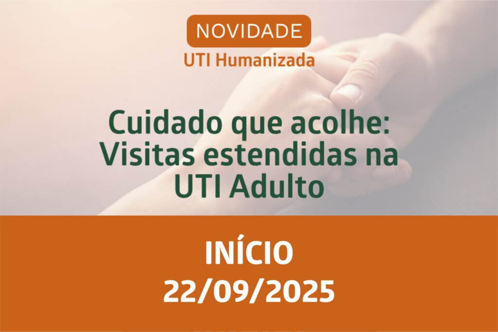 A partir de 22/09, o Hospital Sapiranga dará início à implantação da visita estendida na UTI Adulto, dentro do projeto de UTI Humanizada. A iniciativa permitirá que familiares permaneçam junto ao paciente das 12h às 17h, todos os dias, reforçando o acolhimento e o papel da presença afetiva na recuperação. A medida será válida para pacientes com três ou mais dias de internação.